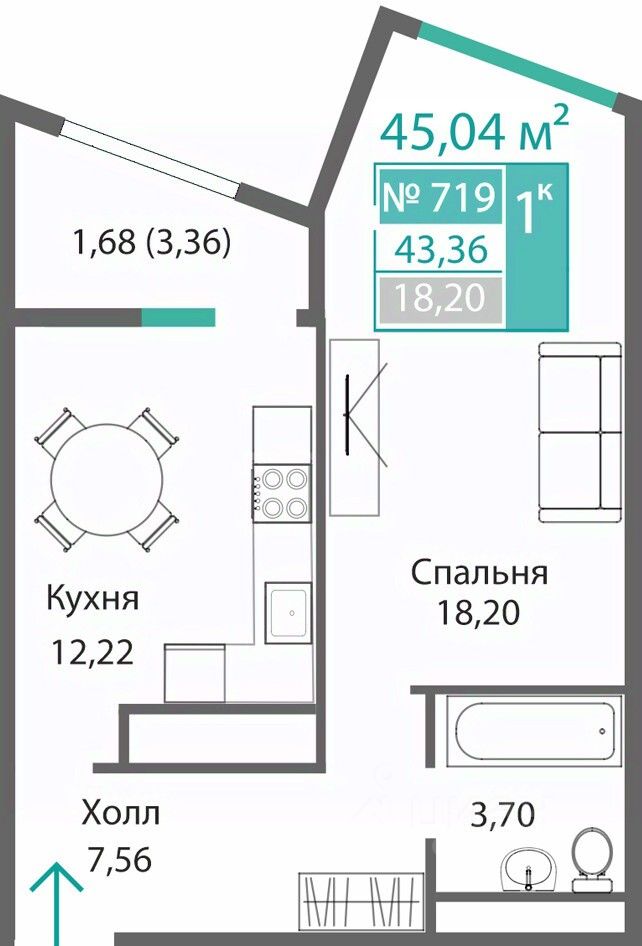 Продаётся 1-комнатная квартира в строящемся доме (Этап 1), срок сдачи: I-кв. 2028, общей площадью 43.36 кв.м., на 7 этаже. Новый жилой комплекс от ГК ''Монолит'' по адресу: Республика Крым, Симферополь, улица Святителя Гурия