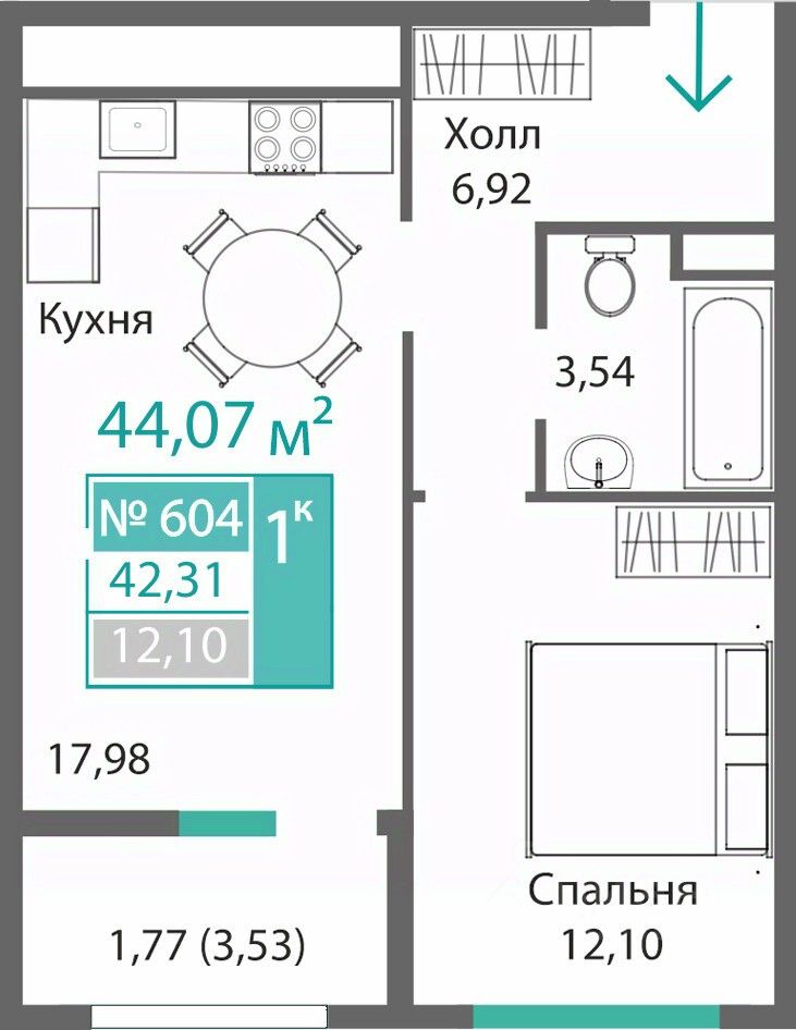 Продаётся 1-комнатная квартира в строящемся доме (Этап 1), срок сдачи: I-кв. 2028, общей площадью 42.31 кв.м., на 6 этаже. Новый жилой комплекс от ГК ''Монолит'' по адресу: Республика Крым, Симферополь, улица Святителя Гурия