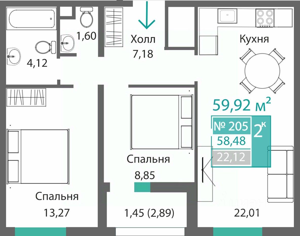 Продаётся 2-комнатная квартира в строящемся доме (Этап 1), срок сдачи: I-кв. 2028, общей площадью 58.48 кв.м., на 2 этаже. Новый жилой комплекс от ГК ''Монолит'' по адресу: Республика Крым, Симферополь, улица Святителя Гурия