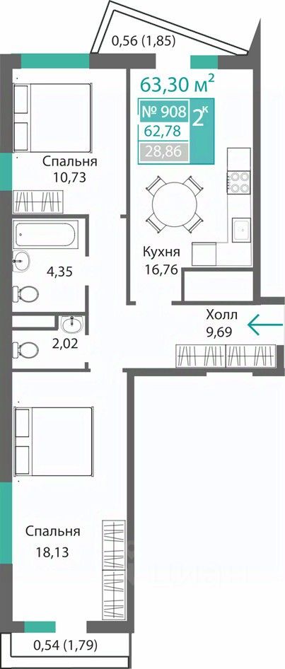 Продаётся 2-комнатная квартира в строящемся доме (Этап 1), срок сдачи: I-кв. 2028, общей площадью 62.78 кв.м., на 9 этаже. Новый жилой комплекс от ГК ''Монолит'' по адресу: Республика Крым, Симферополь, улица Святителя Гурия