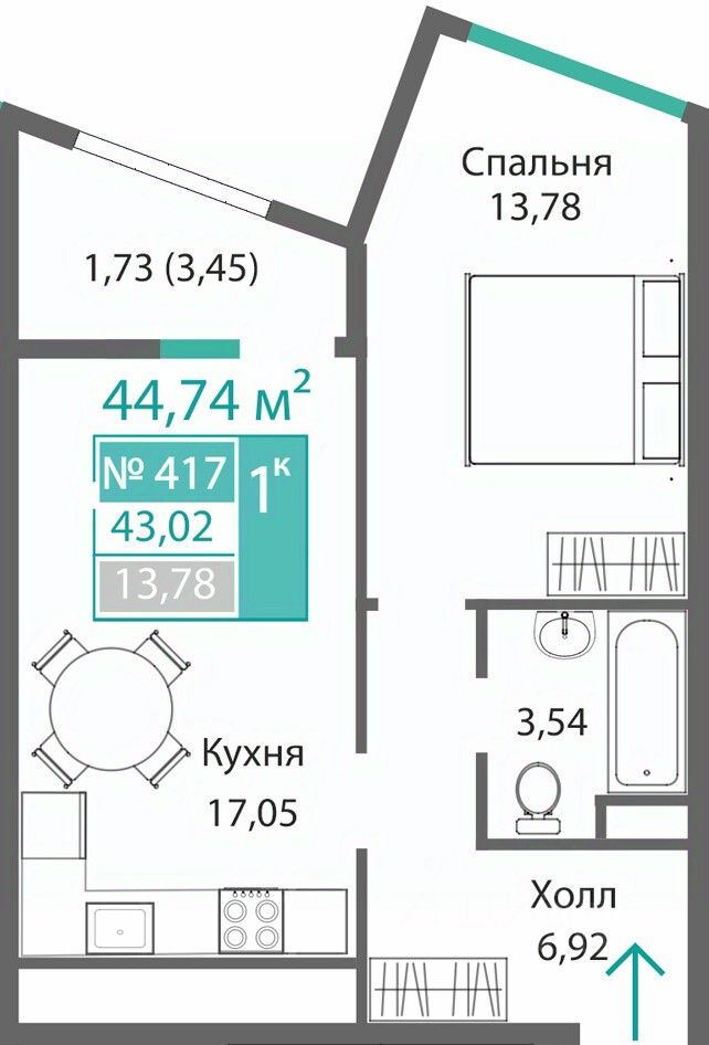 Продаётся 1-комнатная квартира в строящемся доме (Этап 1), срок сдачи: I-кв. 2028, общей площадью 43.02 кв.м., на 4 этаже. Новый жилой комплекс от ГК ''Монолит'' по адресу: Республика Крым, Симферополь, улица Святителя Гурия
