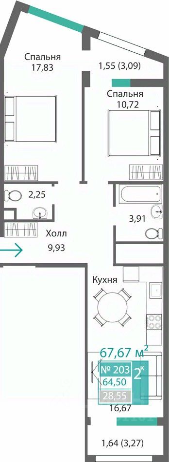 Общая площадь64,5 м2