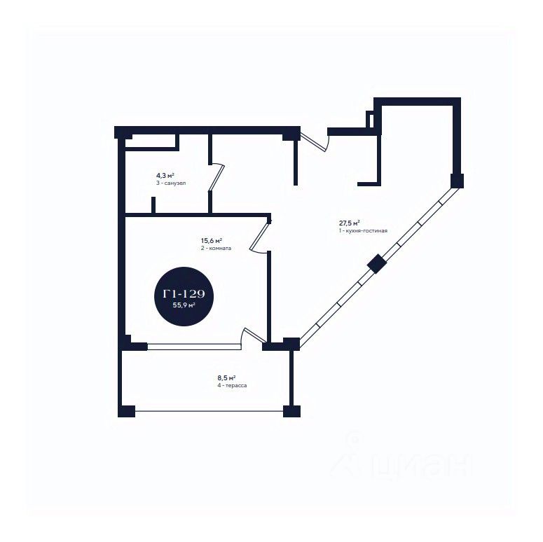 Общая площадь55,9 м2