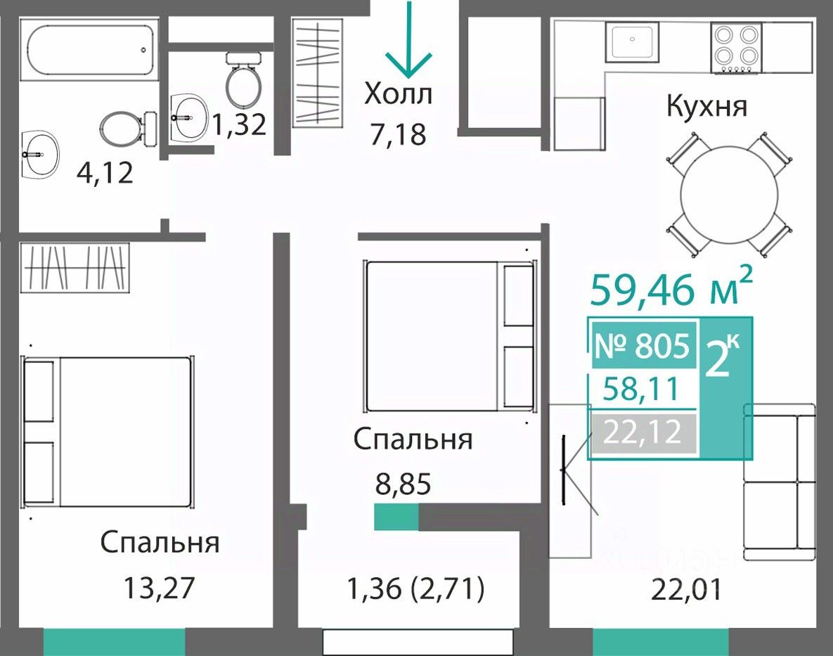 Продаётся 2-комнатная квартира в строящемся доме (Этап 1), срок сдачи: I-кв. 2028, общей площадью 58.11 кв.м., на 8 этаже. Новый жилой комплекс от ГК ''Монолит'' по адресу: Республика Крым, Симферополь, улица Святителя Гурия