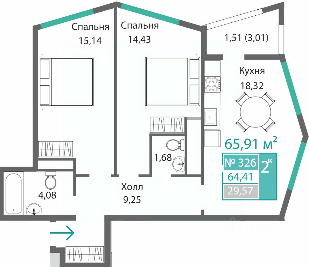 Общая площадь64,41 м2