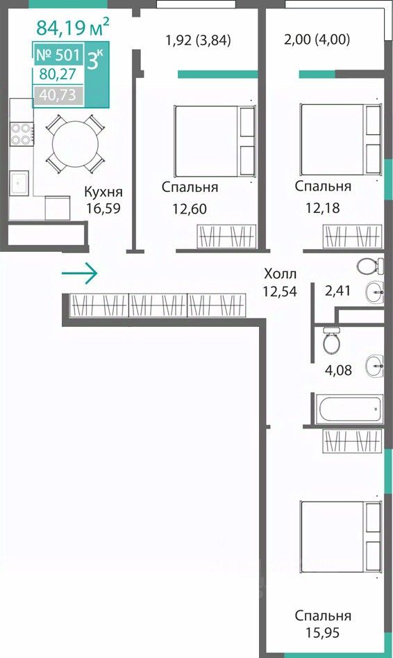 Общая площадь80,27 м2