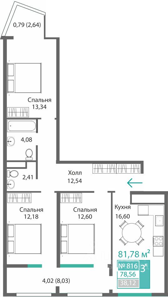 Общая площадь78,56 м2