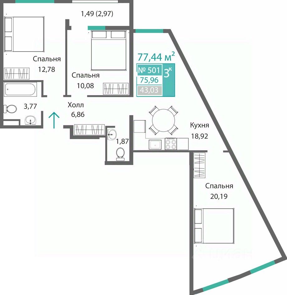 Общая площадь75,96 м2
