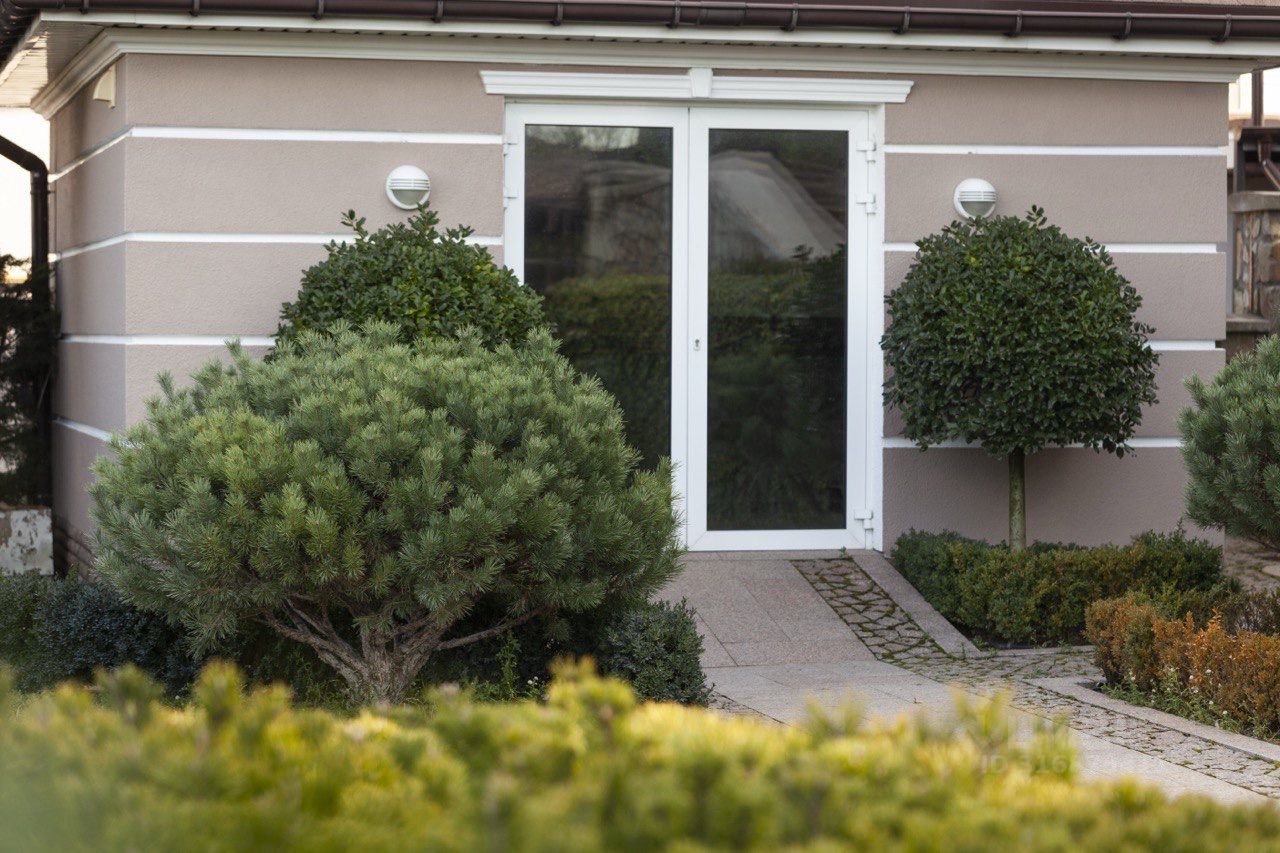 Характеристики домовладения: Общая площадь - 225м2 Этажность - 2 Количество спален 3 (19м2, 18м2, 15м2) Количество с/узлов 2 Кухня столовая + второй свет - 42м2 Гостинная 31м2 Прихожая 9м2 Кладовая 4м2 Терассы, балконы 31м2 Летний домик 20м2 Участок 8 соток