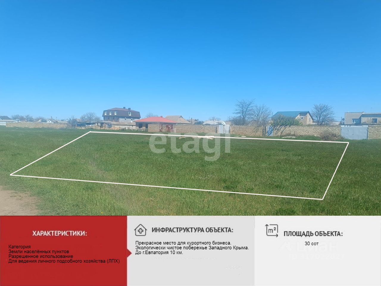 Продается уникальный участок 30 соток в Молочненском сельском поселении, Сакского района, Республики Крым.