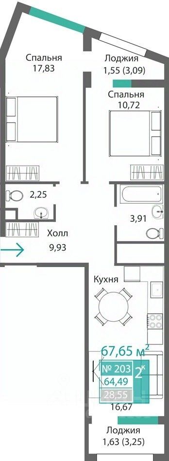 Продаётся 2-комнатная квартира в строящемся доме (Этап 4 (Секции А2, Ж2, Г4, В2, Г3)), срок сдачи: II-кв. 2028, общей площадью 64.69 кв.м., на 2 этаже. Новый жилой комплекс ''Подсолнух'' от застройщика ''Монолит'' расположен по адресу: Республика Крым, г. Симферополь, ул. Святителя Гурия