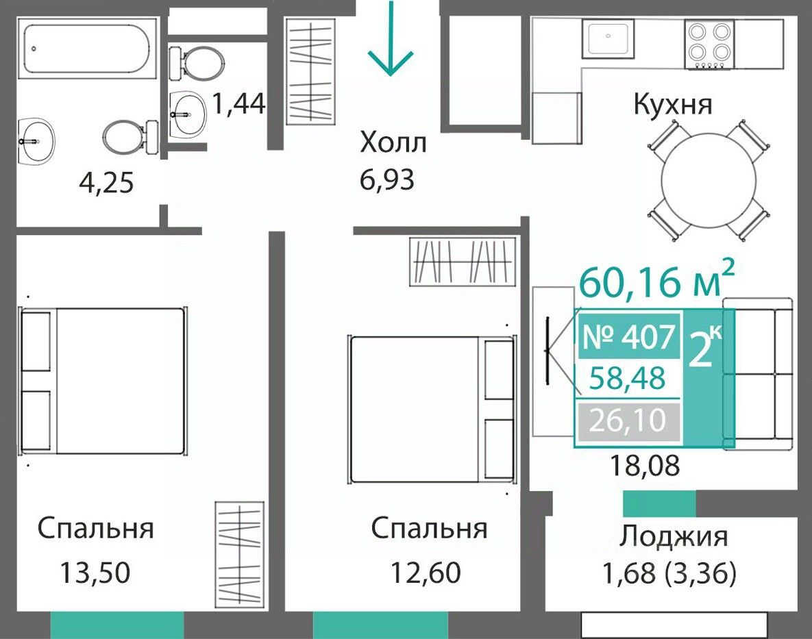 Продаётся 2-комнатная квартира в строящемся доме (Этап 4 (Секции А2, Ж2, Г4, В2, Г3)), срок сдачи: II-кв. 2028, общей площадью 58.48 кв.м., на 4 этаже. Новый жилой комплекс ''Подсолнух'' от застройщика ''Монолит'' расположен по адресу: Республика Крым, г. Симферополь, ул. Святителя Гурия