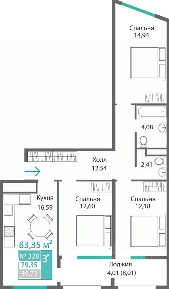 Продаётся 3-комнатная квартира в строящемся доме (Этап 4 (Секции А2, Ж2, Г4, В2, Г3)), срок сдачи: II-кв. 2028, общей площадью 79.35 кв.м., на 3 этаже. Новый жилой комплекс ''Подсолнух'' от застройщика ''Монолит'' расположен по адресу: Республика Крым, г. Симферополь, ул. Святителя Гурия