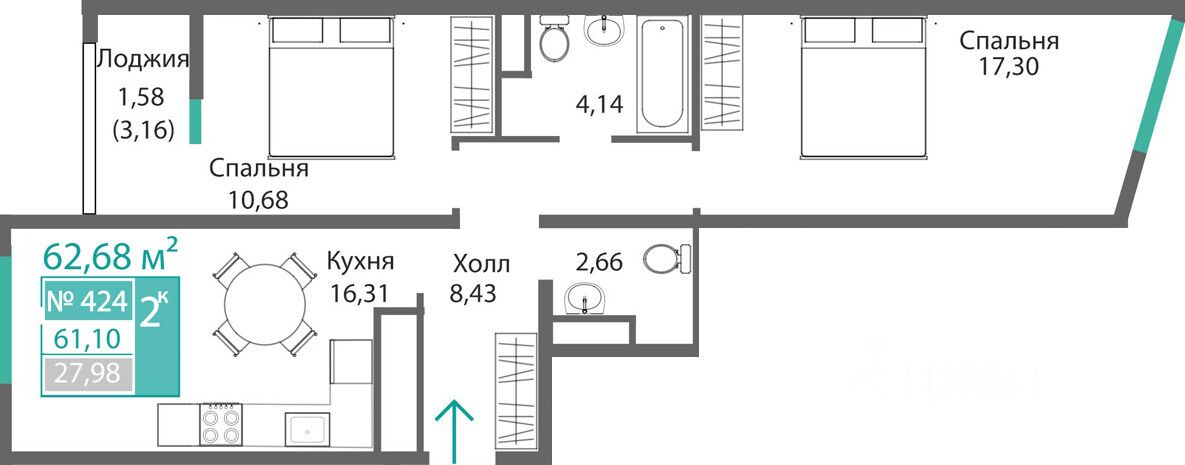 Продаётся 2-комнатная квартира в строящемся доме (Этап 4 (Секции А2, Ж2, Г4, В2, Г3)), срок сдачи: II-кв. 2028, общей площадью 61.1 кв.м., на 4 этаже. Новый жилой комплекс ''Подсолнух'' от застройщика ''Монолит'' расположен по адресу: Республика Крым, г. Симферополь, ул. Святителя Гурия