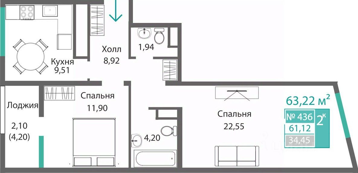 Продаётся 2-комнатная квартира в строящемся доме (Этап 4 (Секции А2, Ж2, Г4, В2, Г3)), срок сдачи: II-кв. 2028, общей площадью 61.12 кв.м., на 4 этаже. Новый жилой комплекс ''Подсолнух'' от застройщика ''Монолит'' расположен по адресу: Республика Крым, г. Симферополь, ул. Святителя Гурия