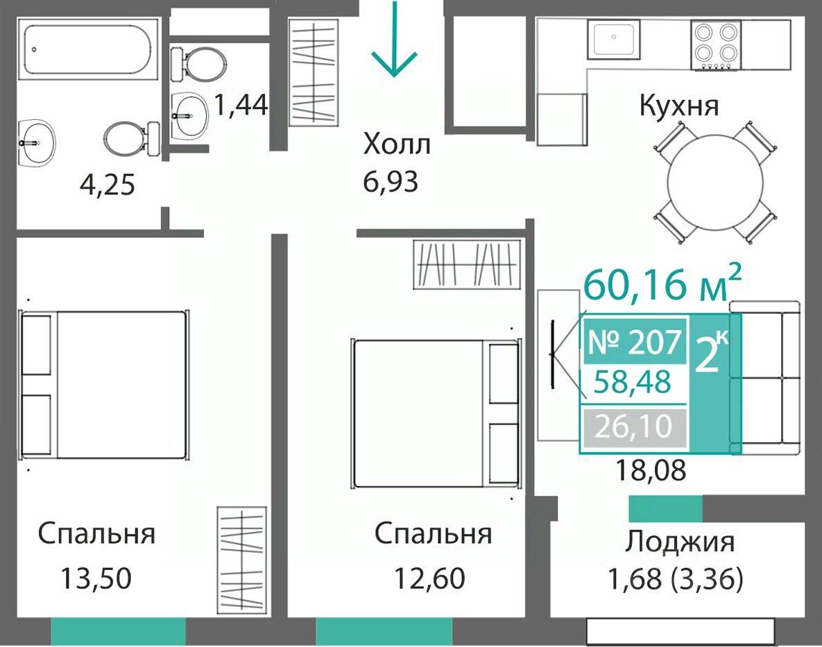 Продаётся 2-комнатная квартира в строящемся доме (Этап 4 (Секции А2, Ж2, Г4, В2, Г3)), срок сдачи: II-кв. 2028, общей площадью 58.48 кв.м., на 2 этаже. Новый жилой комплекс ''Подсолнух'' от застройщика ''Монолит'' расположен по адресу: Республика Крым, г. Симферополь, ул. Святителя Гурия