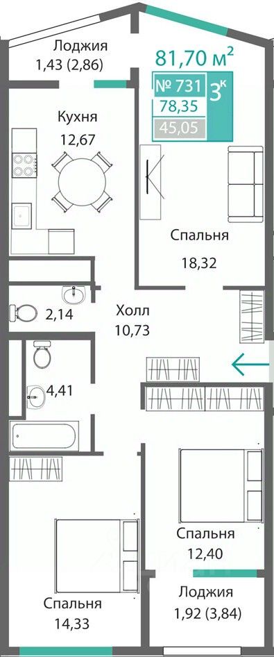 Продаётся 3-комнатная квартира в строящемся доме (Этап 4 (Секции А2, Ж2, Г4, В2, Г3)), срок сдачи: II-кв. 2028, общей площадью 78.35 кв.м., на 7 этаже. Новый жилой комплекс ''Подсолнух'' от застройщика ''Монолит'' расположен по адресу: Республика Крым, г. Симферополь, ул. Святителя Гурия