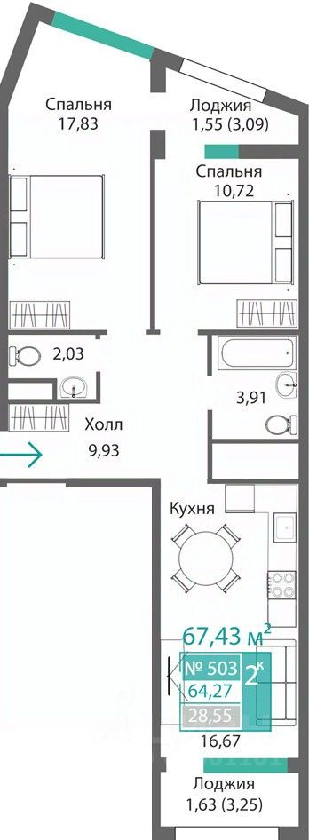 Продаётся 2-комнатная квартира в строящемся доме (Этап 4 (Секции А2, Ж2, Г4, В2, Г3)), срок сдачи: II-кв. 2028, общей площадью 64.27 кв.м., на 5 этаже. Новый жилой комплекс ''Подсолнух'' от застройщика ''Монолит'' расположен по адресу: Республика Крым, г. Симферополь, ул. Святителя Гурия
