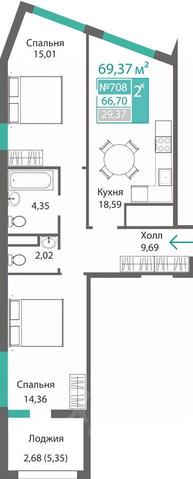 Продаётся 2-комнатная квартира в строящемся доме (Этап 4 (Секции А2, Ж2, Г4, В2, Г3)), срок сдачи: II-кв. 2028, общей площадью 66.7 кв.м., на 7 этаже. Новый жилой комплекс ''Подсолнух'' от застройщика ''Монолит'' расположен по адресу: Республика Крым, г. Симферополь, ул. Святителя Гурия