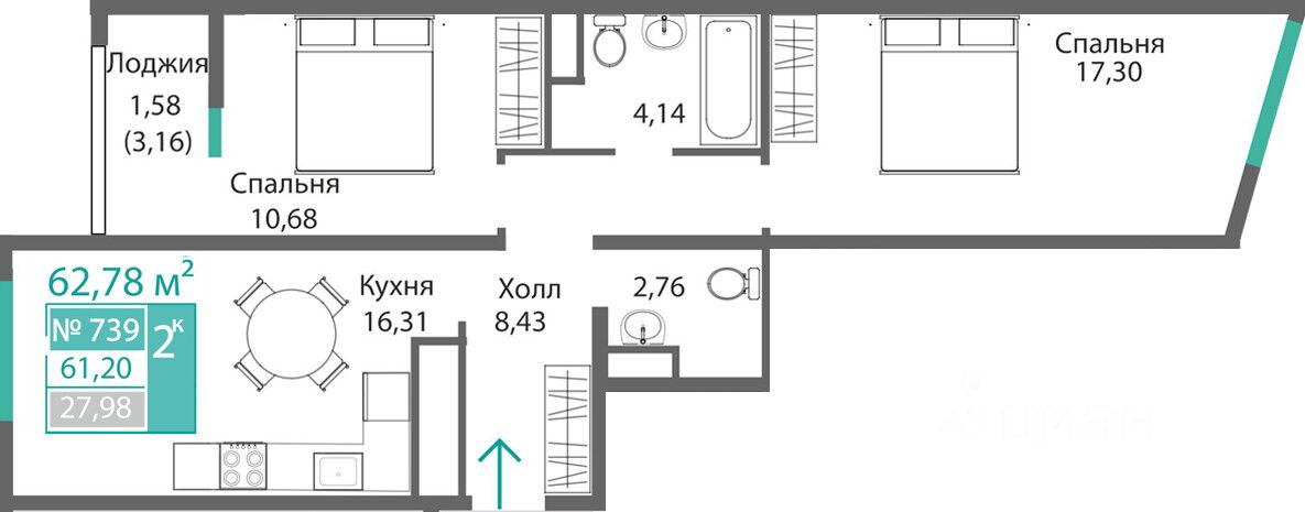 Продаётся 2-комнатная квартира в строящемся доме (Этап 4 (Секции А2, Ж2, Г4, В2, Г3)), срок сдачи: II-кв. 2028, общей площадью 61.2 кв.м., на 7 этаже. Новый жилой комплекс ''Подсолнух'' от застройщика ''Монолит'' расположен по адресу: Республика Крым, г. Симферополь, ул. Святителя Гурия