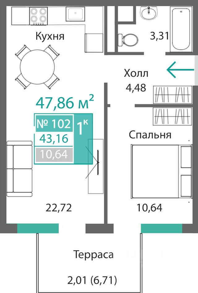 Продаётся 1-комнатная квартира в строящемся доме (Этап 4 (Секции А2, Ж2, Г4, В2, Г3)), срок сдачи: II-кв. 2028, общей площадью 43.16 кв.м., на 1 этаже. Новый жилой комплекс ''Подсолнух'' от застройщика ''Монолит'' расположен по адресу: Республика Крым, г. Симферополь, ул. Святителя Гурия