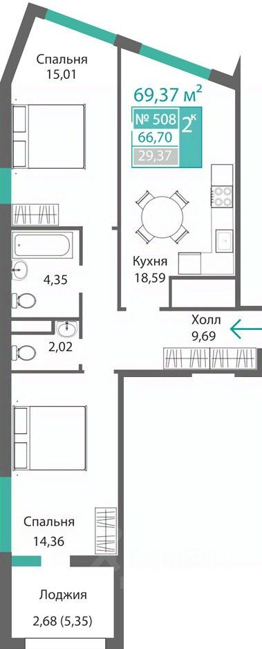 Продаётся 2-комнатная квартира в строящемся доме (Этап 4 (Секции А2, Ж2, Г4, В2, Г3)), срок сдачи: II-кв. 2028, общей площадью 66.7 кв.м., на 5 этаже. Новый жилой комплекс ''Подсолнух'' от застройщика ''Монолит'' расположен по адресу: Республика Крым, г. Симферополь, ул. Святителя Гурия