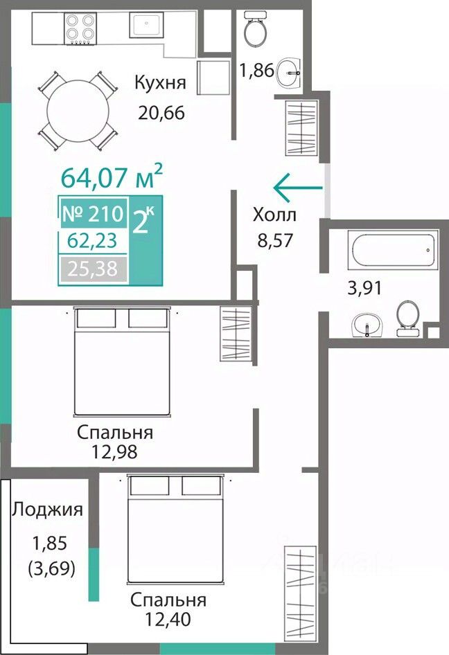 Продаётся 2-комнатная квартира в строящемся доме (Этап 4 (Секции А2, Ж2, Г4, В2, Г3)), срок сдачи: II-кв. 2028, общей площадью 62.23 кв.м., на 2 этаже. Новый жилой комплекс ''Подсолнух'' от застройщика ''Монолит'' расположен по адресу: Республика Крым, г. Симферополь, ул. Святителя Гурия