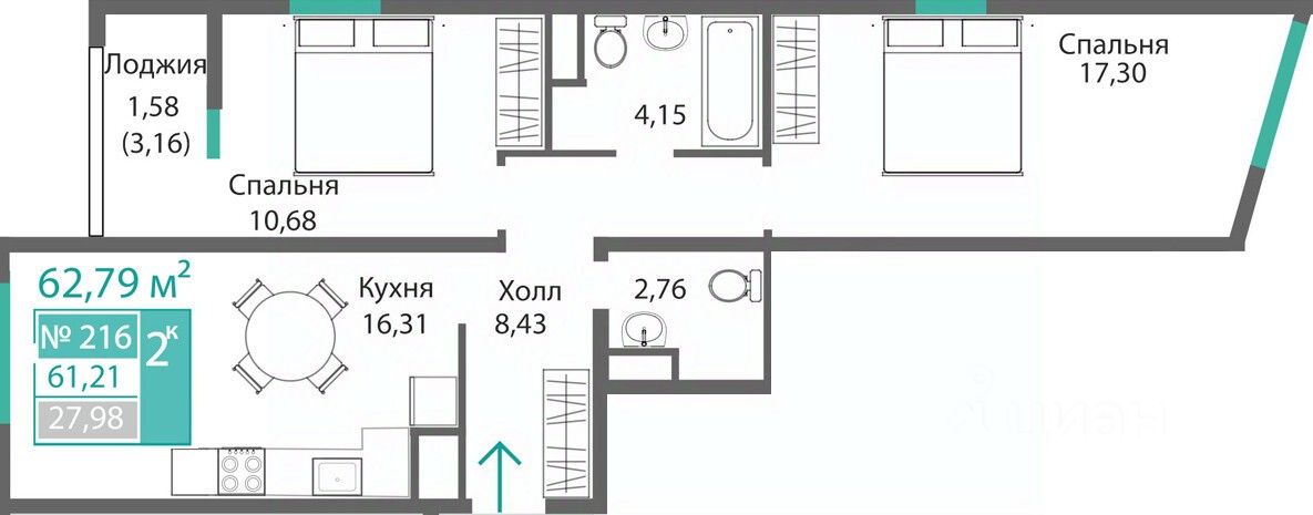 Продаётся 2-комнатная квартира в строящемся доме (Этап 4 (Секции А2, Ж2, Г4, В2, Г3)), срок сдачи: II-кв. 2028, общей площадью 61.21 кв.м., на 2 этаже. Новый жилой комплекс ''Подсолнух'' от застройщика ''Монолит'' расположен по адресу: Республика Крым, г. Симферополь, ул. Святителя Гурия