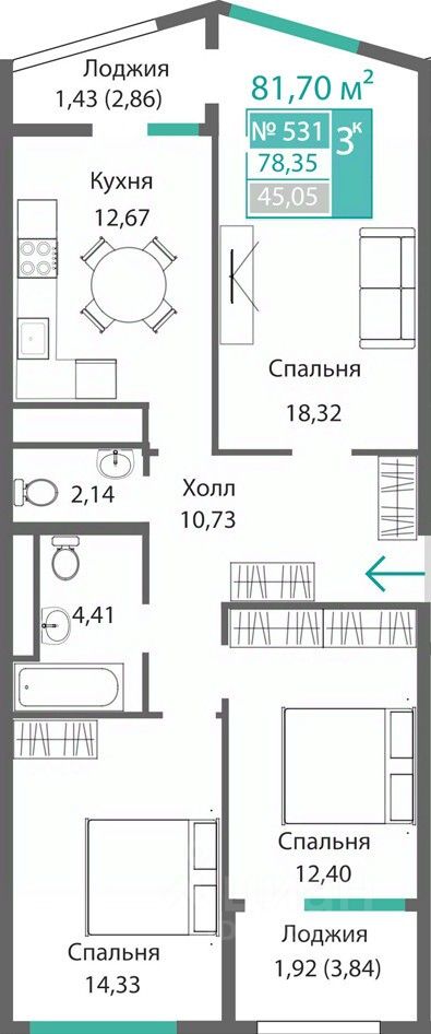 Продаётся 3-комнатная квартира в строящемся доме (Этап 4 (Секции А2, Ж2, Г4, В2, Г3)), срок сдачи: II-кв. 2028, общей площадью 78.35 кв.м., на 5 этаже. Новый жилой комплекс ''Подсолнух'' от застройщика ''Монолит'' расположен по адресу: Республика Крым, г. Симферополь, ул. Святителя Гурия