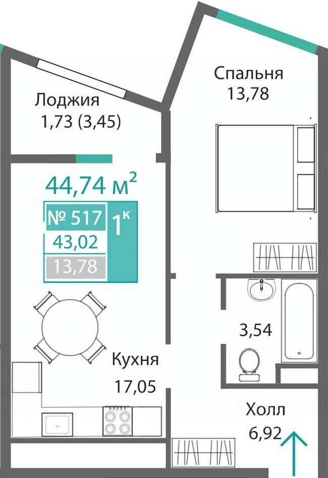Продаётся 1-комнатная квартира в строящемся доме (Этап 4 (Секции А2, Ж2, Г4, В2, Г3)), срок сдачи: II-кв. 2028, общей площадью 43.02 кв.м., на 5 этаже. Новый жилой комплекс ''Подсолнух'' от застройщика ''Монолит'' расположен по адресу: Республика Крым, г. Симферополь, ул. Святителя Гурия