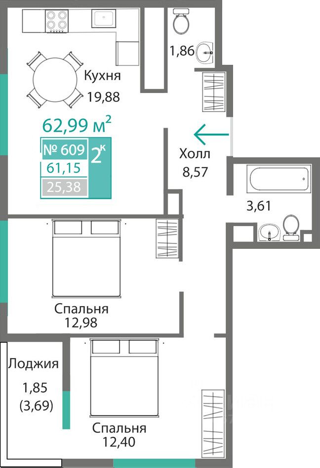 Продаётся 2-комнатная квартира в строящемся доме (Этап 4 (Секции А2, Ж2, Г4, В2, Г3)), срок сдачи: II-кв. 2028, общей площадью 61.15 кв.м., на 6 этаже. Новый жилой комплекс ''Подсолнух'' от застройщика ''Монолит'' расположен по адресу: Республика Крым, г. Симферополь, ул. Святителя Гурия