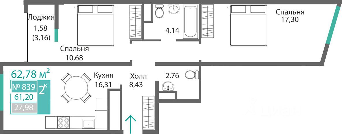Продаётся 2-комнатная квартира в строящемся доме (Этап 4 (Секции А2, Ж2, Г4, В2, Г3)), срок сдачи: II-кв. 2028, общей площадью 61.2 кв.м., на 8 этаже. Новый жилой комплекс ''Подсолнух'' от застройщика ''Монолит'' расположен по адресу: Республика Крым, г. Симферополь, ул. Святителя Гурия