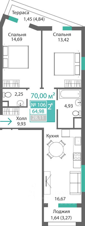 Продаётся 2-комнатная квартира в строящемся доме (Этап 4 (Секции А2, Ж2, Г4, В2, Г3)), срок сдачи: II-кв. 2028, общей площадью 64.98 кв.м., на 1 этаже. Новый жилой комплекс ''Подсолнух'' от застройщика ''Монолит'' расположен по адресу: Республика Крым, г. Симферополь, ул. Святителя Гурия