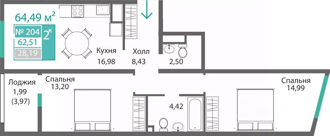 Продаётся 2-комнатная квартира в строящемся доме (Этап 4 (Секции А2, Ж2, Г4, В2, Г3)), срок сдачи: II-кв. 2028, общей площадью 62.51 кв.м., на 2 этаже. Новый жилой комплекс ''Подсолнух'' от застройщика ''Монолит'' расположен по адресу: Республика Крым, г. Симферополь, ул. Святителя Гурия