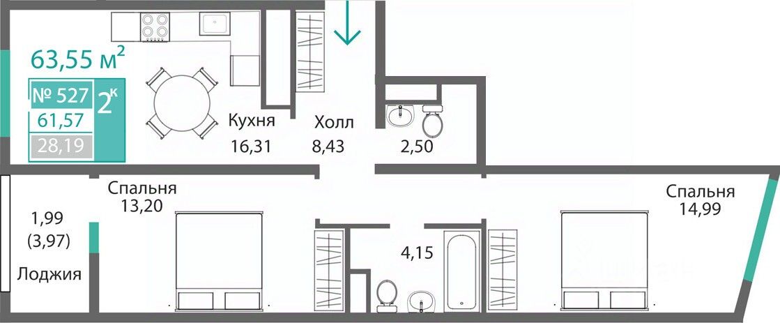 Продаётся 2-комнатная квартира в строящемся доме (Этап 4 (Секции А2, Ж2, Г4, В2, Г3)), срок сдачи: II-кв. 2028, общей площадью 61.57 кв.м., на 5 этаже. Новый жилой комплекс ''Подсолнух'' от застройщика ''Монолит'' расположен по адресу: Республика Крым, г. Симферополь, ул. Святителя Гурия