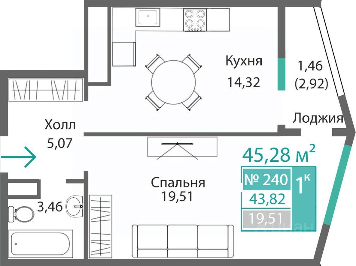 Продаётся 1-комнатная квартира в строящемся доме (Этап 4 (Секции А2, Ж2, Г4, В2, Г3)), срок сдачи: II-кв. 2028, общей площадью 43.82 кв.м., на 2 этаже. Новый жилой комплекс ''Подсолнух'' от застройщика ''Монолит'' расположен по адресу: Республика Крым, г. Симферополь, ул. Святителя Гурия