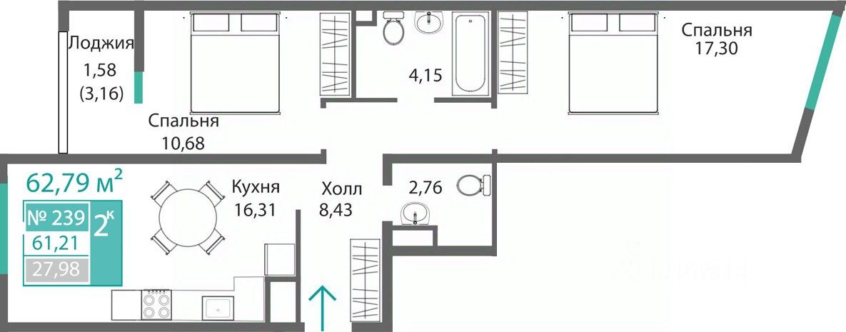 Продаётся 2-комнатная квартира в строящемся доме (Этап 4 (Секции А2, Ж2, Г4, В2, Г3)), срок сдачи: II-кв. 2028, общей площадью 61.21 кв.м., на 2 этаже. Новый жилой комплекс ''Подсолнух'' от застройщика ''Монолит'' расположен по адресу: Республика Крым, г. Симферополь, ул. Святителя Гурия