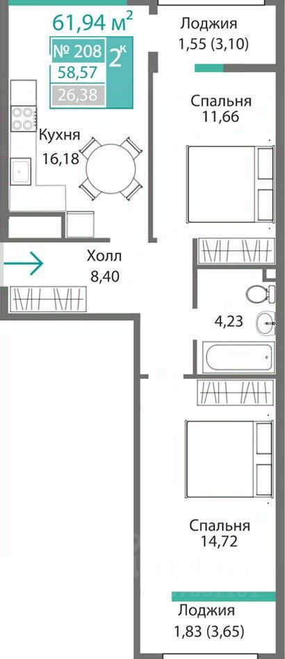 Продаётся 2-комнатная квартира в строящемся доме (Этап 4 (Секции А2, Ж2, Г4, В2, Г3)), срок сдачи: II-кв. 2028, общей площадью 58.57 кв.м., на 2 этаже. Новый жилой комплекс ''Подсолнух'' от застройщика ''Монолит'' расположен по адресу: Республика Крым, г. Симферополь, ул. Святителя Гурия