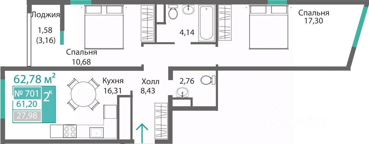 Продаётся 2-комнатная квартира в строящемся доме (Этап 4 (Секции А2, Ж2, Г4, В2, Г3)), срок сдачи: II-кв. 2028, общей площадью 61.2 кв.м., на 7 этаже. Новый жилой комплекс ''Подсолнух'' от застройщика ''Монолит'' расположен по адресу: Республика Крым, г. Симферополь, ул. Святителя Гурия