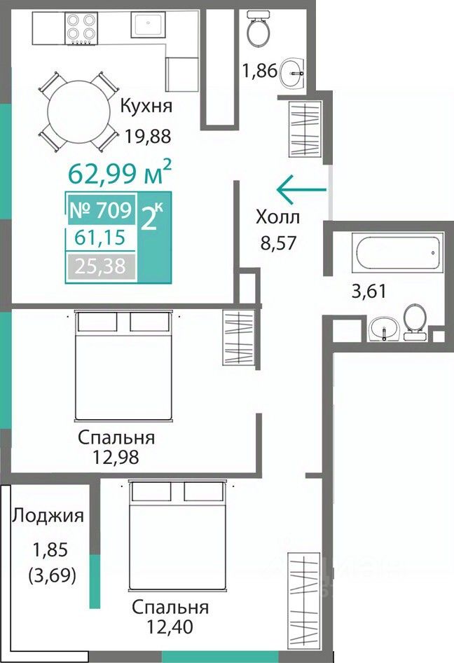 Продаётся 2-комнатная квартира в строящемся доме (Этап 4 (Секции А2, Ж2, Г4, В2, Г3)), срок сдачи: II-кв. 2028, общей площадью 61.15 кв.м., на 7 этаже. Новый жилой комплекс ''Подсолнух'' от застройщика ''Монолит'' расположен по адресу: Республика Крым, г. Симферополь, ул. Святителя Гурия