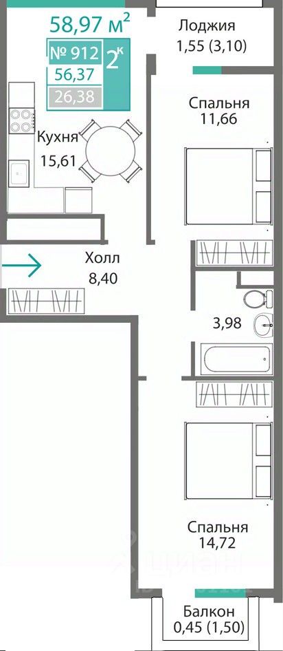 Продаётся 2-комнатная квартира в строящемся доме (Этап 4 (Секции А2, Ж2, Г4, В2, Г3)), срок сдачи: II-кв. 2028, общей площадью 56.37 кв.м., на 9 этаже. Новый жилой комплекс ''Подсолнух'' от застройщика ''Монолит'' расположен по адресу: Республика Крым, г. Симферополь, ул. Святителя Гурия