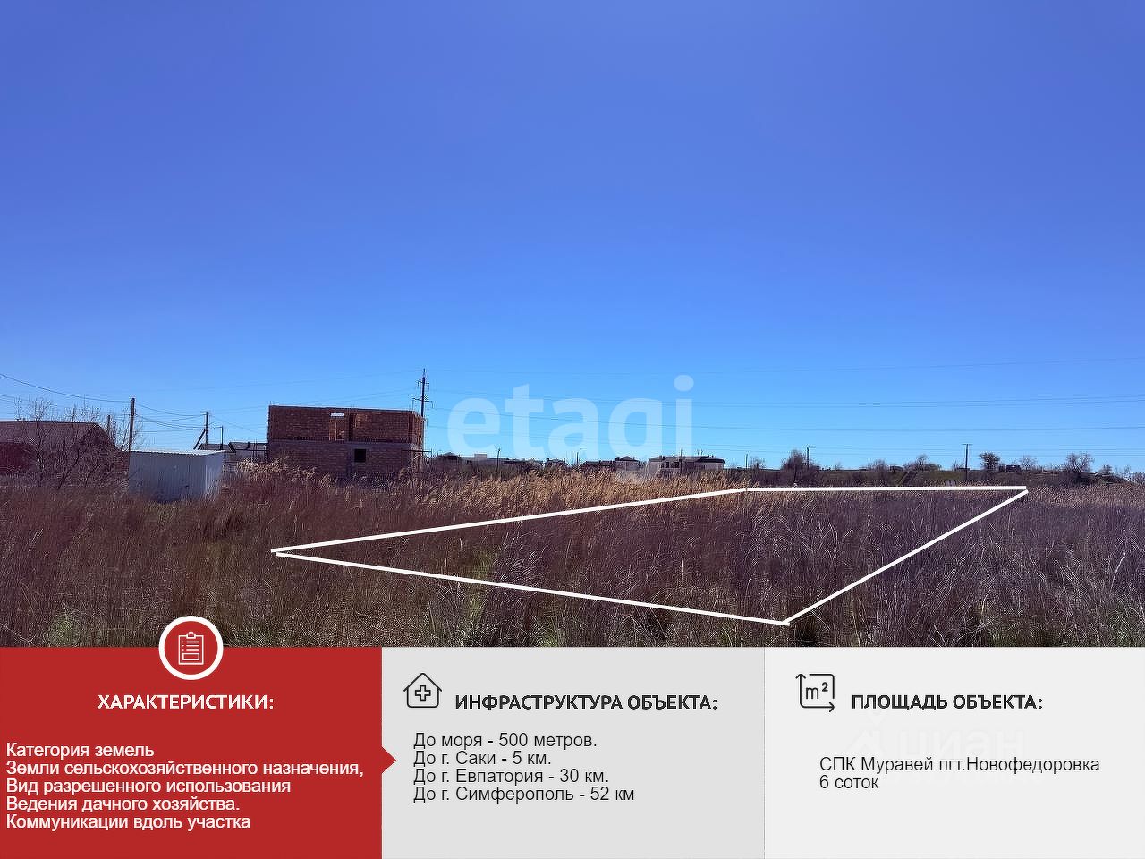 Новофедоровка — это не просто поселок, а место с полноценной инфраструктурой для комфортной жизни. Детский сад, школа, магазины, больница, аптеки и почта — все под рукой. При этом вы остаетесь в гармонии с природой, вдали от городской суеты, но с легким доступом к цивилизации. Всего 5 км отделяют вас от города Саки с его знаменитыми лечебными грязями, 30 км — от солнечной Евпатории, а до Симферополя можно добраться за час.