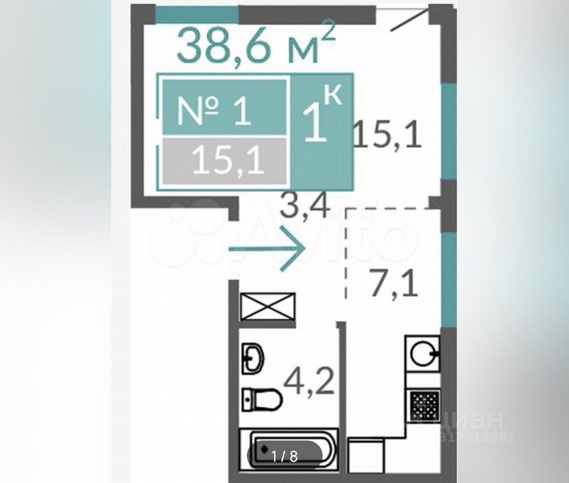 продам 1-к, Симферопольская, 2ф9 525 000 ₽