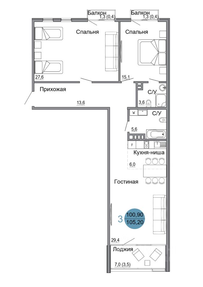 Общая площадь105,2 м2