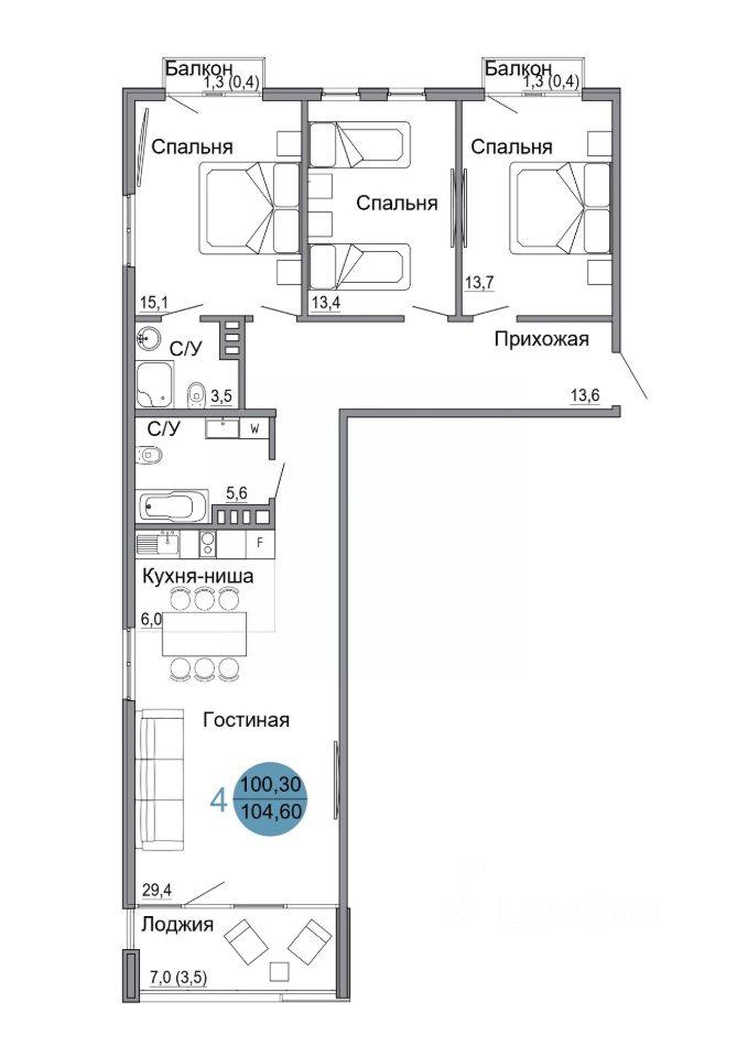 Общая площадь104,6 м2