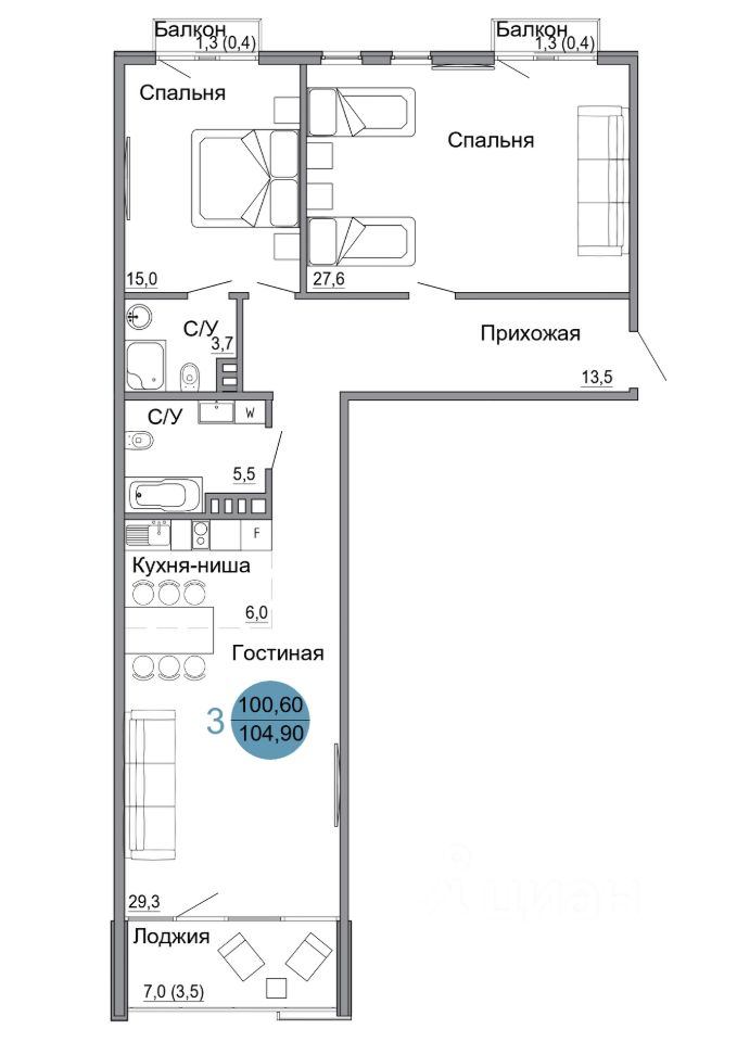 Общая площадь104,9 м2