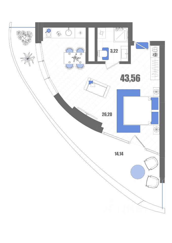 Продаётся студия-апартаменты в строящемся доме (Блок 1), срок сдачи: III-кв. 2027, общей площадью 43.56 кв.м., на 3 этаже. Moinaco Riviera'' - мультиформатный комплекс с круглогодичной wellness-инфраструктурой, идеально сочетающий в себе комфорт и доходность в шаговой доступности от побережья Чёрного моря.