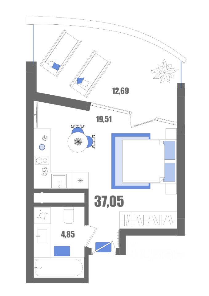 Общая площадь37,05 м2