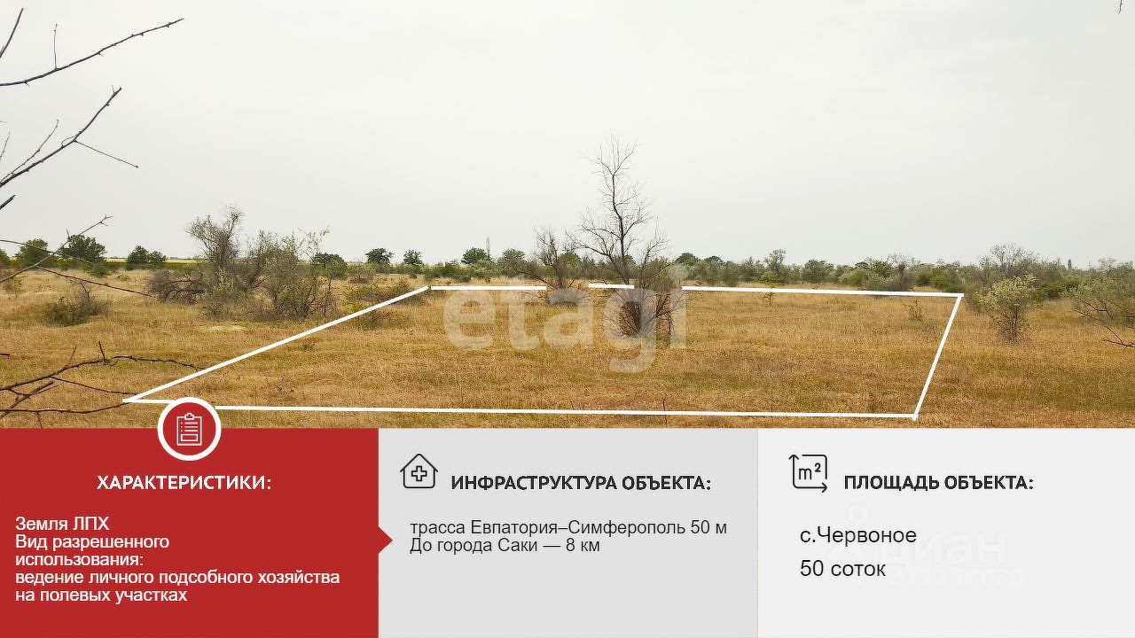 Земельный участок площадью 50 соток сельскохозяйственного назначения расположен в Западном Крыму, за поселком Червоное, и предназначен для ведения личного подсобного хозяйства на полевых участках. Участок имеет четкие границы — межевание проведено, площадь уточнена, право собственности оформлено. Территория не разработана, что предоставляет свободу для планирования и обустройства в соответствии с вашими потребностями. Электричество доступно — столбы расположены в 100 метрах от границы участка, а водоснабжение можно организовать за счет собственной скважины.