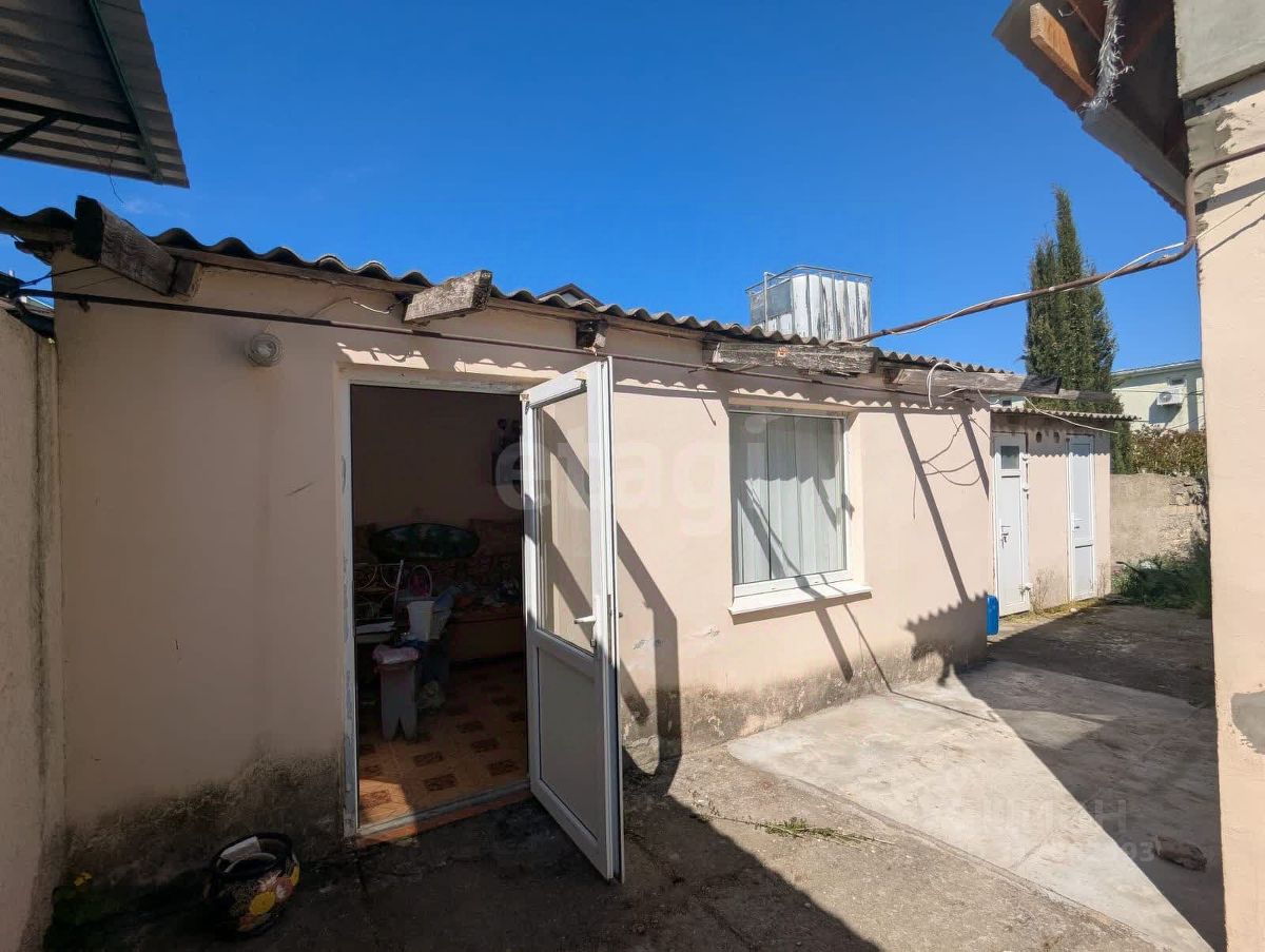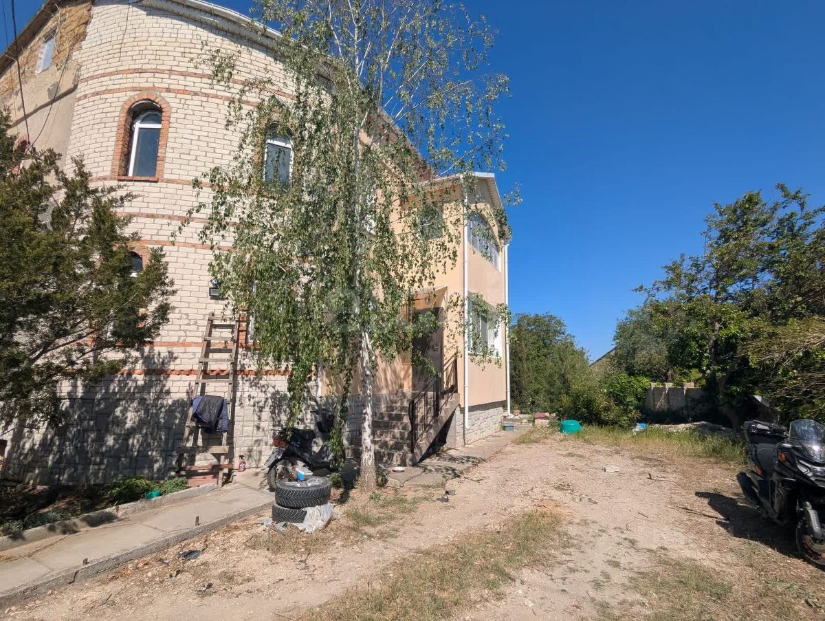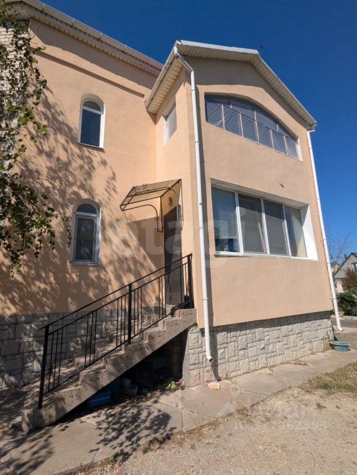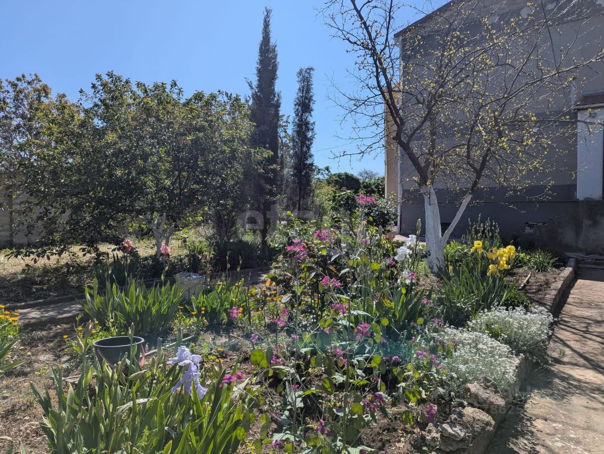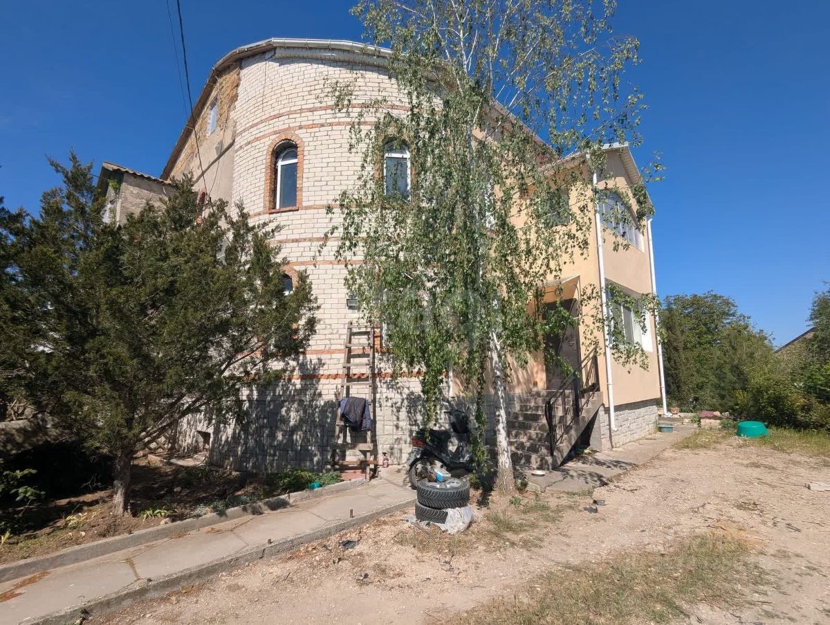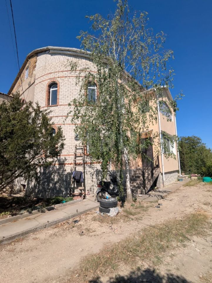 Дом трехэтажный. На первом этаже вместительная прихожая 18,4 квадратных метра, из которой можно попасть в большую столовую и кухню с выходом в прекрасный сад. Железобетонный фундамент, стены из альминского камня, кирпича и ракушечника, перекрытие железобетонные блоки. С другой стороны проход в огромный двухэтажный холл, высотой 5,5 метров, из которого можно попасть в комнату с видовым балконом, площадью 23,8 квадратных метра. На первом этаже расположен санузел и ванная комната с душевой кабиной. Поднявшись по лестнице холла, вы попадете на второй этаж, где расположены три широкие светлые комнаты площадью 24,7, 20,2 и 19,2 квадратных метра, из окна комнат открывается живописный вид на город. Также на втором этаже имеется совмещенный санузел с душевой кабиной. Цоколь содержит четыре комнаты и гараж, которые, частично, не оборудованы. По проекту, возможно, сделать бассейн с сауной. Во дворе располагается двухэтажный гостевой домик - на первом этаже комната, кухня и раздельные душевые с санузлом. Второй этаж не оборудован. Есть отдельная летняя кухня с выходом на беседку. Во дворе расположена крытая беседка площадью 35 квадратных метров. Во дворе сделан ландшафтный дизайн. Высажены хвойные растения, красивые ухоженные цветники и плодовый сад. Отопление индивидуальное, вода-скважина.
